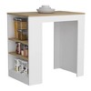 This stylish kitchen island features a counter-height top that is perfect for entertaining guests while you cook, allowing them to sit comfortably and enjoy drinks and appetizers. With an ample superior top, it serves as an ideal dining table for meals with family and friends, while three side shelves provide convenient storage for cooking supplies, spices, and other essentials, making meal prep a breeze and offering versatile use as a counter height table, workspace, or storage solution.