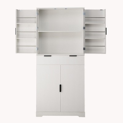 Maliang Minimalist White Buffet Cabinet with Double Glass Doors and Drawer, for Living room, Dining Room