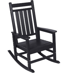 Upgrade your outdoor relaxation with our Ergonomic Patio Rocking Chair, designed for superior comfort and durability. Featuring a reclined backrest, widened armrests, and contoured seat, this chair provides full-body support while you unwind. Crafted from high-density polyethylene with 304 stainless steel hardware, it withstands extreme weather without fading, cracking, or rotting. With a generous 380-lb weight capacity, spacious 19.7"W seat, and extra height (41.7"H) for head support, it’s built for long-lasting comfort. Easy 30-minute assembly with included tools and video guide.