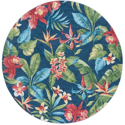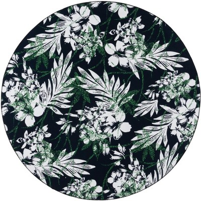 Malibu MBU821 Machine Washable Skid-Resistant Power Loomed Indoor Area Rug - Dark Green/Grey - 6' Round - Safavieh