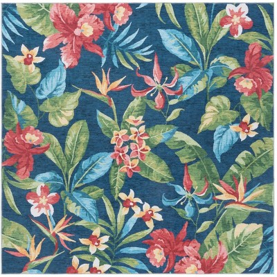Malibu MBU821 Machine Washable Skid-Resistant Power Loomed Indoor Area Rug - Dark Green/Grey - 6'x6' - Safavieh
