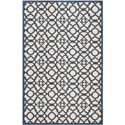 Malibu MBU828 Machine Washable Skid-Resistant Power Loomed Indoor Area Rug - Ivory/Navy - 5'x8' - Safavieh