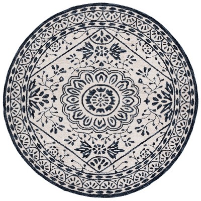 Malibu MBU828 Machine Washable Skid-Resistant Power Loomed Indoor Area Rug - Ivory/Navy - 6' Round - Safavieh