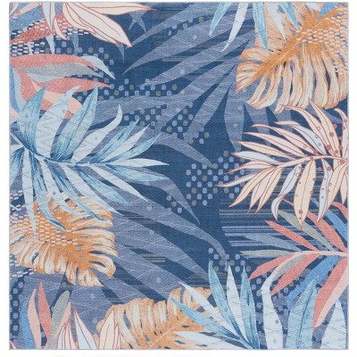Malibu MBU842 Machine Washable Skid-Resistant Power Loomed Indoor Area Rug - Dark Blue/Green - 6'x6' - Safavieh