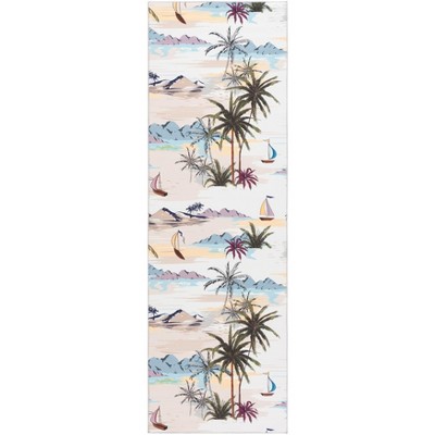 Malibu MBU844 Machine Washable Skid-Resistant Power Loomed Indoor Runner Rug - Beige/Blue - 2'6"x8' - Safavieh