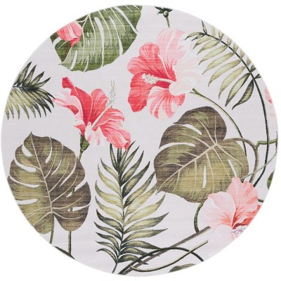 Malibu MBU845 Power Loomed Machine Washable Skid-Resistant Indoor Area Rug - Ivory/Green - 6' Round - Safavieh