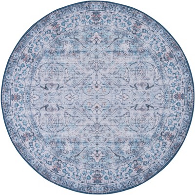Malibu MBU849 Machine Washable Skid-Resistant Power Loomed Indoor Area Rug - Aqua/Pink - 6' Round - Safavieh