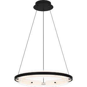 Simple construction and minimal styling elevate the frosted glass detail of Malik. A clean and contemporary ring defines the pendant, featuring a matte black finish for a sharp contrast. An integrated LED light source shines through the clear shade, sparkling brilliantly as it touches each frosted glass accent.