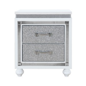 White FinishContemporary StyleExudes Modern GlamourCrushed Crystal Drawer FrontsGlitter, Mirrored Accent