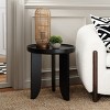 Enliven any corner with the warmth and striking appeal of our Malyn accent table. The table celebrates natural grains of wood within a sculptural silhouette to inspire a soft and modern profile. It features a round and sculpted tabletop, perched upon three beautifully curved legs. Enriched in a black tone of pine wood, our accent table lends a cozy appeal and dose of interest to any room. It serves as a welcoming and versatile addition to your bedside, sofa, or armchair.