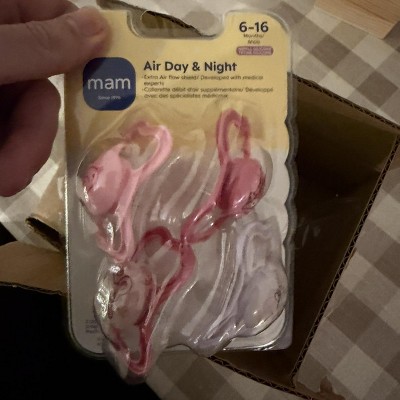 Just because your baby's skin needs a bit of extra love and care shouldn't mean that baby has to forego the soothing comfort of a pacifier. The MAM Air Day & Night Collection has a shield that is specially designed for babies with sensitive skin. The extra wide air holes allow plenty of circulation around your baby's mouth and even allow you to peek at their little smile. One pacifier in this pack is a special glow in the dark collection that helps keep baby's binky in sight without having to turn on the light and disturb baby's sleep. All MAM pacifiers feature our trademarked SkinSoft silicone nipples that feel like mom and help babies transition from breast to pacifier. In fact, market research showed that MAM nipples are easily accepted by babies of all ages, with 94% nipple acceptance among babies tested*. The symmetrical nipple shape means you won't have to worry about uneven pressure or fussing to turn the pacifier "right side up". *Market research 2010-2023, tested with 1,588 babies