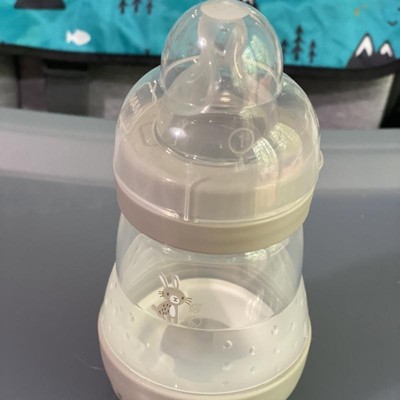 I was excited to receive this set through the Stellar Product Testing Panel! I originally added these bottles to my registry. My daughter took this bottle without any problems after two weeks of exclusively Breastfeeding. Washing all the parts was extremely easy compared to other brands. The only con is that you can't see the 1 ounce measurement on these bottles, but it does have a nipple cover that works as a measuring cup for the newborn stage. I would recommend this product to all my breastfeeding friends