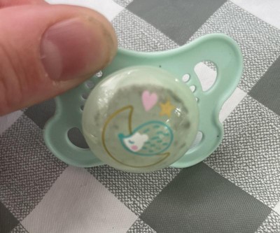My son loved these pacifiers. Will never buy them again. Since the night time are glow in the dark they are see through. I noticed black dots in the pacifier button. I cut it open with a razor blade and there is mold in the button of the pacifier. I hand rinse/ wash my pacifiers but clearly the baby’s saliva and spit up can get it there as well. I opened up my other ones that are not see through and have animal prints on them and it’s the same thing all mold. Please do not buy these and throw the ones you do have. This is a safety issue.
