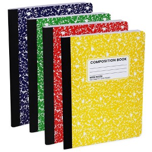 Brighten up your daily notes with this set of vibrant marble composition notebooks. Each book includes 100 wide ruled sheets with strong sewn binding for long-lasting use. The classic 9.75" x 7.5" size is ideal for school, home, or office, while the bold covers in assorted primary colors make it easy to stay organized. Whether you're taking notes, writing ideas, or planning your week, these durable notebooks offer reliable performance with a colorful twist.