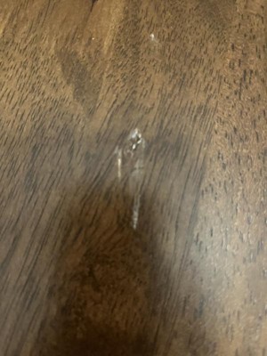 I replaced my 60"round table with this to give my small dining area a new look. I read a few reviews about imperfections so I wasn't surprised to see a few on my table. I'll get a brown furniture marker to hide it along with a runner. I love the look and weight. It took 45 min. to complete.