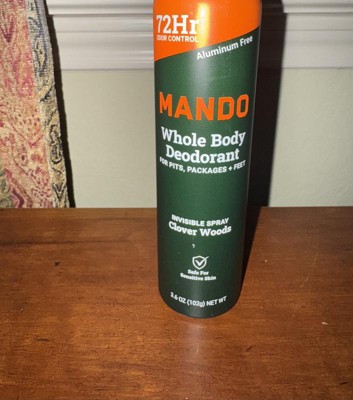 Mando Whole Body Men's Invisible Spray Deodorant Clover Woods - Aluminum-Free 3.6oz