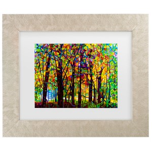 This ready to hang, gallery-wrapped art piece features trees with bright, colorful leaves.Mandy Budan began studying art in highschool and advertising design in college. Mandy worked for many years as a graphic designer in both print and digital media. Always fascinated by the vibrant colours and shapes that make up the Canadian landscape, Mandy started painting in 2000. She works with acrylic paint on wood panels, she works to transform the landscape into a series of abstract patterns. Her work is in private and corporate collections around the world.Giclee (jee-clay) is an advanced printmaking process for creating high quality fine art reproductions. The attainable excellence that Giclee printmaking affords makes the reproduction virtually indistinguishable from the original piece. The result is wide acceptance of Giclee by galleries, museums, and private collectors. Gallery wrap is a method of stretching an artist's canvas so that the canvas wraps around the sides and is secured a hidden, wooden frame. This method of stretching and preparing a canvas allows for a frameless presentation of the finished painting.