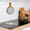 - CARE INSTRUCTIONS: For best results, clean the trivet with a damp cloth after each use to preserve its vibrant colors and natural bamboo frame. Avoid soaking or placing it in the dishwasher, as this may damage the materials. Packaged in a protective white die-cut box, it’s ready for safe and stylish gifting, making it an ideal choice for friends and family.