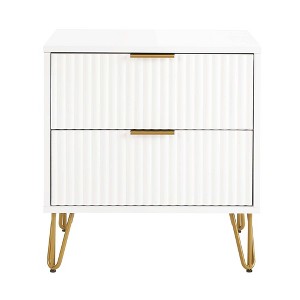 Manhattan Comfort Dumbo 2 Drawer Nightstand White: Modern MDF Bedside Table with Metal Glides, Storage