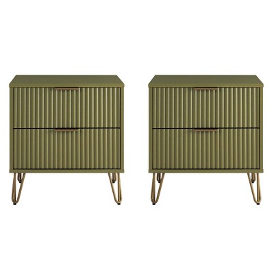 Manhattan Comfort Set of 2 Dumbo 2 Drawer Nightstands Golden Brown: Modern MDF Storage Furniture with Metal Glides