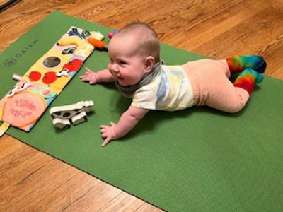 Our baby got this book for Christmas and he loves Playing with it during tummy time. The different textures and sounds really encourage him to move around and reach out. I gotta ask, though, where are the apples in this mini Apple Farm? Lol
