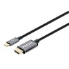 Easily convert a USB-based audio/video signal into HDMI® format. The Manhattan® USB-C® to HDMI® Adapter Cable transmits a USB audio/video signal to an HDMI® projector, flat-panel display, television, or similar device. Built-in circuitry allows digital media enthusiasts to easily enjoy USB-based multimedia content on an Ultra High Definition (UHD) display or TV while maintaining simultaneous A/V reception at the source. Its UHD capability supports up to 3840 x 2160 at 30 Hz and 4K to serve a wide range of resolutions in many devices and UHD applications including training, retail and trade show settings. Your source device must support DP Alt Mode. No additional setup is required. It effortlessly delivers digital content that is stored on a smartphone, tablet, Ultrabook™, or notebook computer to a display with HDMI® input capabilities._