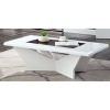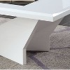 A white high gloss rectangular coffee table modernizes any space. With a black tempered glass insert in the center of the tabletop, this accent piece welcomes a monochrome interior design. This ultra modern style is both clean and elegant. The painted glass tabletop insert and unique base design is a sure way to serve unexpected detail.