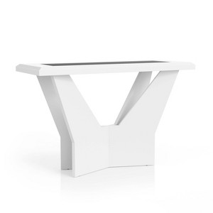 Bold, contemporary and oh-so-alluring, this sofa table adds instant aesthetic appeal and drama to your home decor. Coming with a suave geometric base and a glossy finish, this piece makes a statement in your space. Tempered glass provides to the overall modern design of this sofa table, ready to serve you with style as well as function. Choose this sofa table to entirely transform modern living spaces.