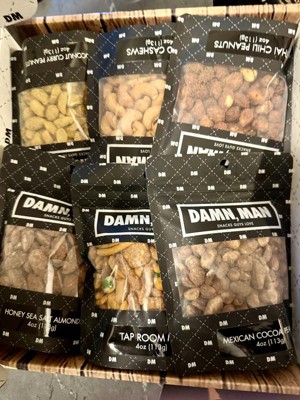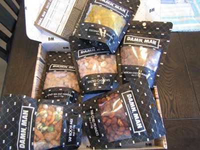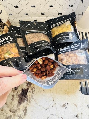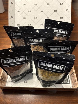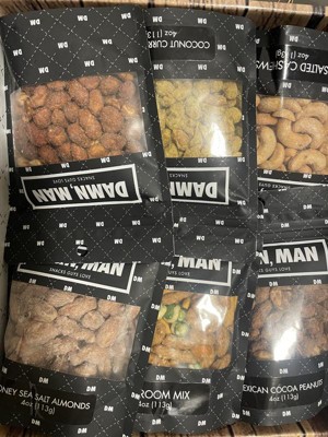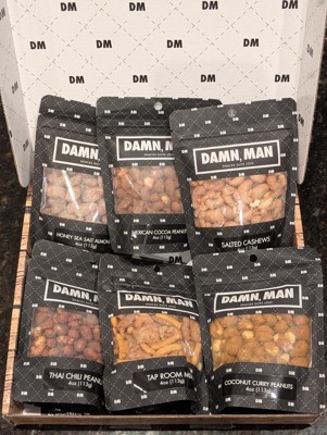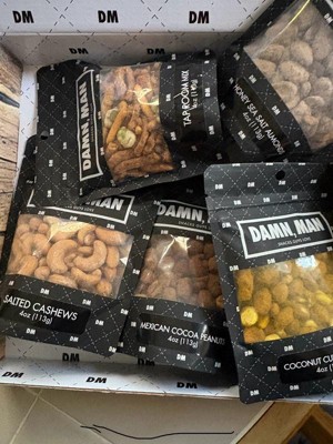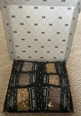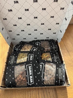 DMSnacks Manly Nut Box – Gourmet Mixed Nuts Gift Set with 6 Bold Varieties in Resealable Bags | High Protein Snack Gift Box & Holiday Gift are fantastic. The branding is corny and non essential but the snacks great. Perfectly portioned for watching a game, he "ate the whole bowl".