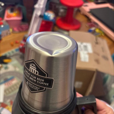 The Stack Growler features four stacking 12oz cups, making it the perfect accessory for sharing. Simply remove the top collar to release the cups and gain access to the screw-top cap. The high capacity double-wall stainless steel vessel coupled with the double handle loops for carrying make the Stack Growler a must-have for outdoor activities with friends and families. Beverages will stay hot for 12 hours and cold up to 48 hours with ice. Lid and stainless steel cups are top-rack dishwasher safe. Stainless steel vessel is hand wash only, no abrasives.