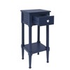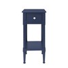 Add coastal ambiance to your favorite space with this lovely nautically themed end table. Featuring a navy-blue finish, this square wood table is the perfect place for a lamp and a cup of coffee while relaxing with a book. Adorned with a decorative starfish knob, the single drawer keeps essential items within easy reach, while the lower shelf is perfect for displaying photographs and keepsakes. Ideal as a living room side table, bedroom nightstand, or bathroom stand, this table will make a delightful accent to your home decor.