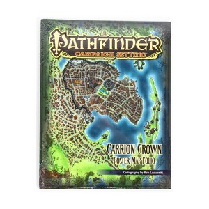 Stand against the denizens of the night in the Carrion Crown Adventure Path. In battles against dreaded vampire lords, brutal werewolves, and abominations from beyond space and time, you’ll scour the breadth of the mysterious realm of Ustalav. The Carrion Crown Poster Map Folio is your lantern in the dreadful dark, charting your course through the entire campaign.Within this map folio, you’ll find a huge 8-panel poster map of the country of Ustalav, along with four 4-panel poster maps of the gothic cities of Ardis, Caliphas, Karcau, and Lepidstadt, all major locations in Ustalav, the setting for the terrors of the Carrion Crown Adventure Path. Even if you aren’t running the Carrion Crown Adventure Path, the maps inside can serve as the sinister surroundings for all manner of mysteries, murders, and macabre machinations in any RPG campaign. The shadows of Ustalav gather—dare you gaze within?