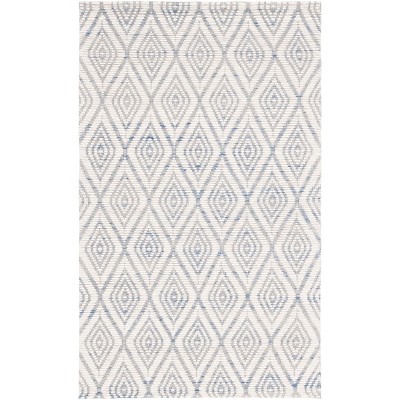 Transform your living space with a touch of modern elegance using our hand-loomed contemporary area rug. Crafted with precision in the vibrant fusion of blue and ivory, this small rectangular 3' X 5' rug introduces subtle sophistication into any room.