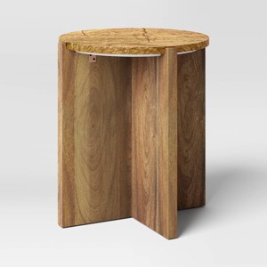 Add classic flair to your home with this Marble and Wood Accent Table from Threshold™. This round wide-leg accent table is crafted from wood to make it a beautiful and practical addition to any space in your home. Designed with a marble tabletop, this wood-grain-finish accent table integrates well with your existing decor style.