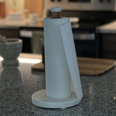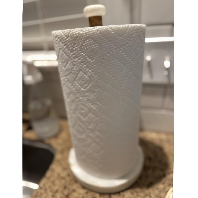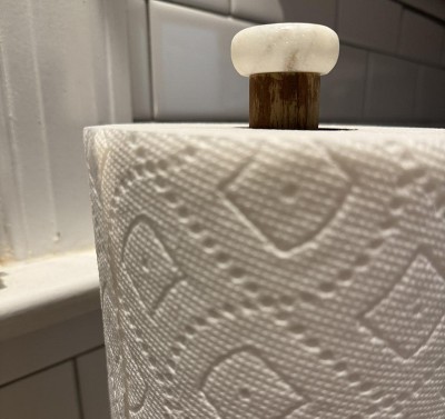 Marble Paper Towel Holder - Threshold™: Freestanding Off-White Kitchen Towel Holder, Wood & Marble, 13.25" Height