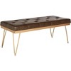 Introducing the Marcella bench in a harmonious blend of brown and gold. This piece is designed to infuse elegance and function into your living space. The bench features a comfortable seat crafted from pu material, perfectly complemented by a sleek metal frame. The rich brown adds warmth, while the gold accents provide a touch of sophistication. Ideal for entryways, living rooms, or bedrooms, the Marcella bench offers both style and utility. Its versatile design makes it a fitting choice for various decor themes, whether modern or classic. Elevate your home with the Marcella bench and enjoy a tasteful addition to your furniture collection. Transform your space with this stylish and functional piece that promises to be a centerpiece in any room.