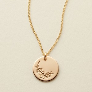Gratitude is the highest vibration. No matter where you go, carry this symbol of gratitude close to your heart. Available in gold filled, rose gold filled, or sterling silver, this delicate disc is customized with a hand-drawn cherry blossom stamp.