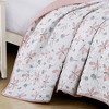 Brighten up your child’s room with this playful bedspread featuring a charming dragonfly and dandelion print in soft pinks and grays on a crisp white background. The whimsical design adds a light and cheerful touch, perfect for creating a cozy and inviting sleep space.