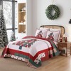 Add a touch of cozy charm to your holiday décor with this Patchwork Christmas Tree Quilt Set. Featuring a bold and colorful tree made of geometric patchwork in classic holiday colors, this bedspread brings a warm, handcrafted feel to your bedroom. The festive look is complete with a detailed border and a reversible design that showcases a cheerful red-and-white winter pattern on the back. Made from soft, lightweight polyester, this quilt offers comfort without heaviness—perfect for layering or using on its own.
