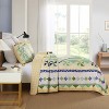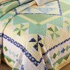 This bedding set features a charming patchwork design with a palette of soft greens, yellows, and blues. The geometric patterns, including triangles and diamonds, are meticulously arranged, giving it a quaint, nostalgic feel. It's perfect for adding a touch of classic, cozy charm to the bedroom.