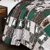 Transform your bedroom into a cozy retreat with this lodge-inspired patchwork bedspread. Featuring a mix of earthy greens, browns, and neutrals with designs of bears, paw prints, forest trees, and rustic plaids, it brings a warm cabin-style charm to any space. The detailed stitching adds texture while keeping the filling evenly distributed for long-lasting comfort.