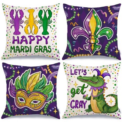Mardi Gras Pillow Cover 12x20 Inch Masquerade Fleur De Lis Carnival Donuts Beads Decorative