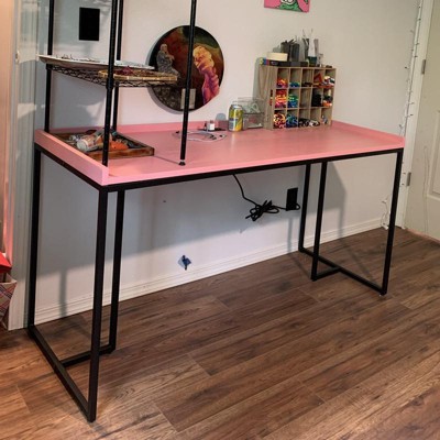 The minimalist will enjoy this lipped black desk on a matching steel frame. Although it's simple design suggests a delicate structure, an anti-tipping mechanism prevents the desk from falling over. You can attach wheels with locking brakes for easy mobility and stability in an office. And have the freedom to write while your phone and computer charge on the plugged in ports.