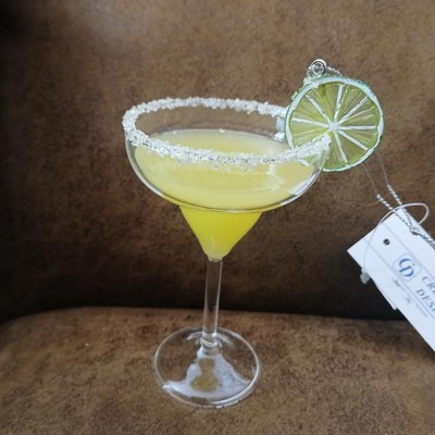 A: The ornament is designed as a classic margarita with a salt rim and lime wedge.