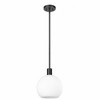 Mid-Century Modern influences make way for this stunningly sleek contemporary pendant, designed with a gorgeous white glass globe shade that brightens interiors elegantly and effortlessly. The glowing orb-like pendant dangles over kitchen islands, countertops and breakfast nook tables, suspended by a slender brushed nickel steel rod and matching flush plate mount. Create a row of these transitional one-light pendants for a more minimalist aesthetic and vintage expression.