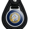 - QUALITY MATERIAL: Our durable round keychain is crafted from leather with a glossy resin-topped emblem featured design shown on one side. Approximately 1.5" (3.8cm) x 2.5" (6.4cm) in overall size, emblem is 1" (2.5cm)..