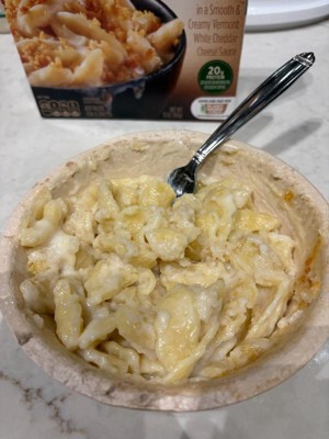 - Savor pasta smothered in a rich Vermont white cheddar and aged Parmesan sauce made with real cream