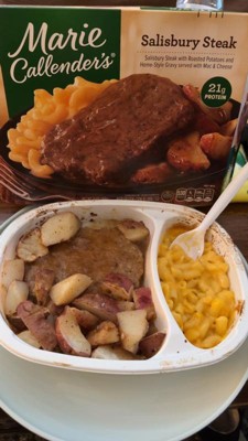 - Featuring Salisbury steak with roasted potatoes and home-style gravy served with mac and cheese to offer quick meals with delicious taste
