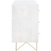 Discover the elegance of the Marigold 3 Drawer Chest, a beautiful addition to your home decor. Its white washed finish, complemented by brass accents, brings a touch of sophistication to any room. Crafted from wood and metal, this chest perfectly balances style and function. The three spacious drawers offer ample storage, making it an ideal choice for your bedroom, living room, or hallway.