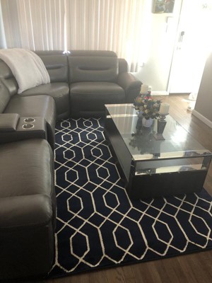 This rug is beautiful! I love the royal blue and gold look. It gives my living room a rich look. Love it.